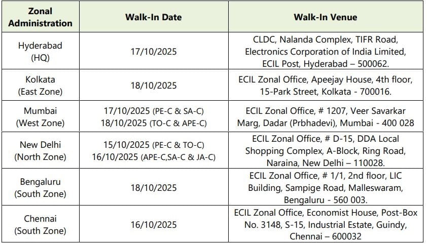 Candidates with an ITI/ Diploma/ B.E./ B.Tech in a relevant field looking for government jobs can check the Vacancies below. Interested candidates should go through the ECIL website and apply for the posts till 18-10-2025. Also see ECIL Contract Job Notification 2025, Job Location, Salary, Important Dates, Selection Procedure, Age Limit, Application Fee, and How to apply for ECIL Hyderabad Recruitment below: