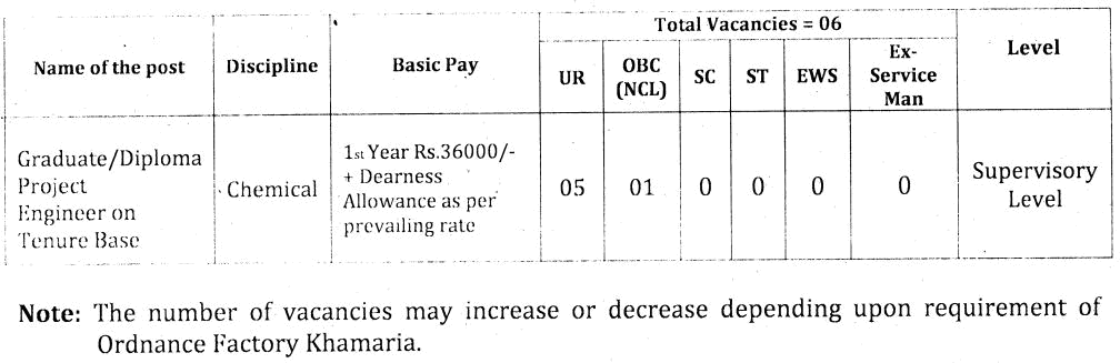 Below are the Ordnance Factory Khamaria, a unit of Munitions India Ltd., recruitment details: