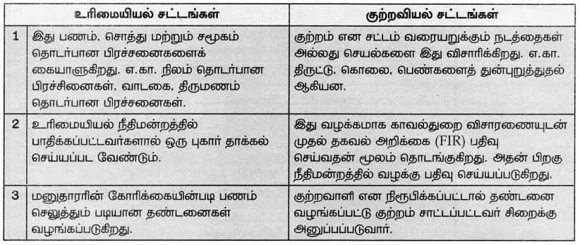 2. உரிமையியல் சட்டம், குற்றவியல் சட்டம் – வேறுபடுத்துக.