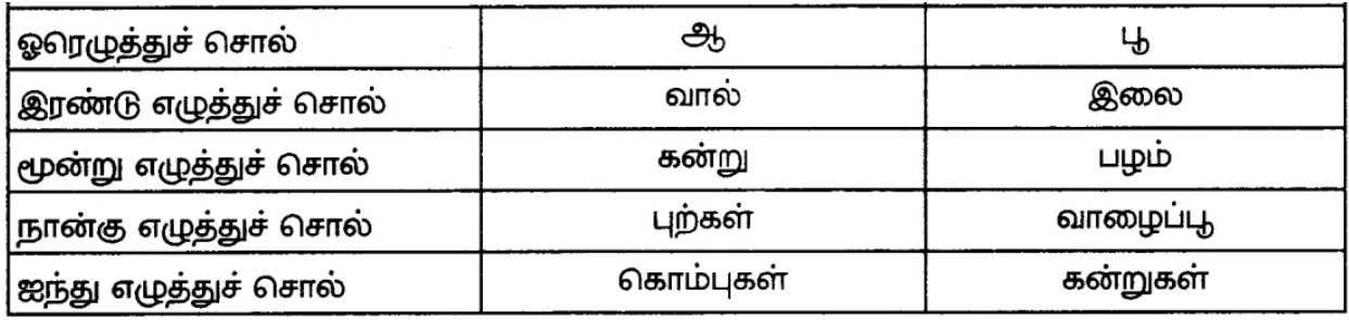 1. எழுத்து இலக்கணத்தின்படியும் யாப்பு இலக்கணத்தின்படியும் எழுத்துகளின் வகைகளை வேறுபடுத்தி ஓர் அட்டவணை உருவாக்குக.